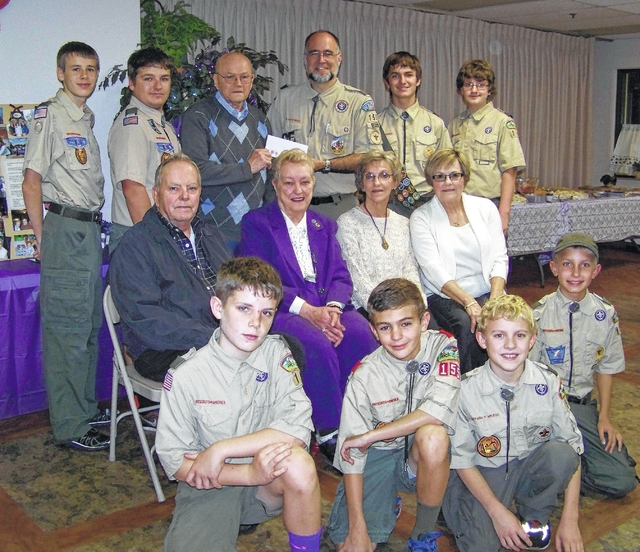 Prior to the ceremony, members of the Alzheimer’s support group presented a monetary donation to the Boy Scouts.