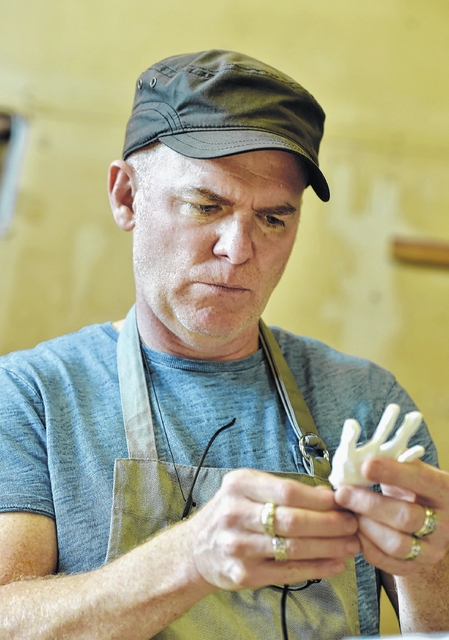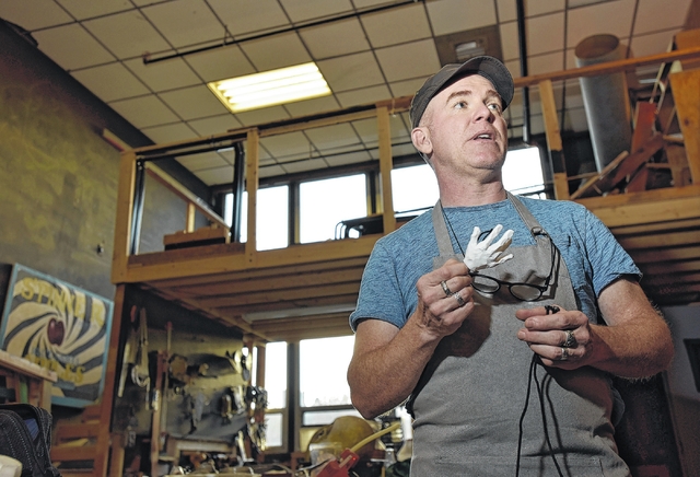 “See how light it is,” James Godwin said, passing around a puppet hand crafted from a foam called L200. “This is the kind of material you can use to make something large look like it’s heavy, but it’s not.”