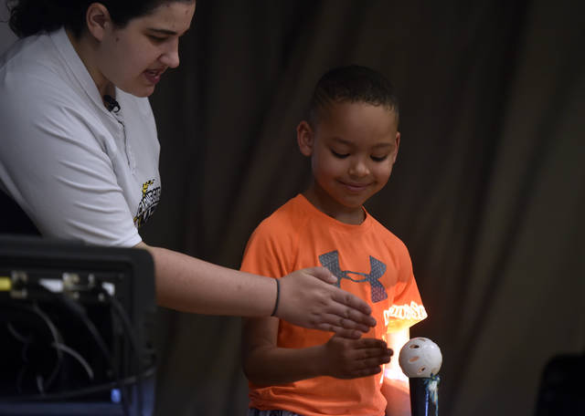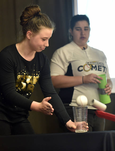 The kids did not head out to the school’s field and choose teams. Instead, kindergarten through sixth-graders entered the gym to learn about the science in baseball with Aly Toy, of the Carnegie Science Center in Pittsburgh.