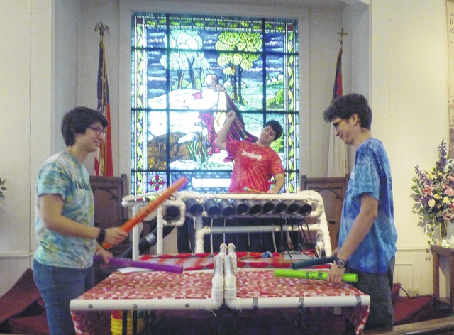 After the parade, members joined Robinson for church services as well as a musical treat from This Way Up. The band is comprised of the Crull family, who plays religious music using unconventional percussion instruments. The Crulls create sound by hitting vibrantly colored plastic tubes, which they call Boomwhackers, along with PVC and corrugated drain pipe. This Way Up’s website describes their sound as “a gigantic demented whacked out pipe organ.”