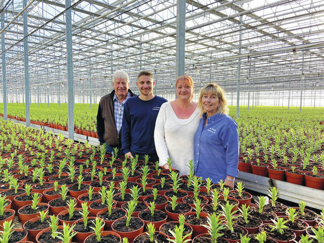 Some members of the van Hoekelen family at van Hoekelen Greenhouses Inc. near Hazleton. From left, are: Cok van Hoekelen, two of his children — Alex van Hoekelen and Lori Bowser — and wife Lori, who is the owner and CEO of the business that opened in 1988.