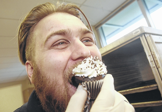 Letting his sweet tooth show, Dallas Middle School teacher’s aide Zach Taylor of Dallas, gladly tasted a cupcake provided by InFusion Sales Group, a vendor of Metz Culinary Management, who provides menu options for the District’s lunch programs.