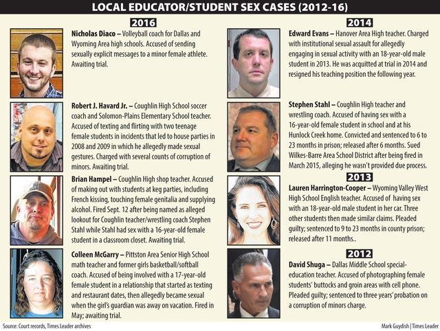 The scandal involving the ex-Coughlin shop teacher and wrestling coach — one that later would ensnare his boss — is among eight sexual misconduct cases involving Luzerne County educators or coaches since 2012. Half of those cases came in 2016, a year that saw as many educators and coaches charged as in the previous four years combined.