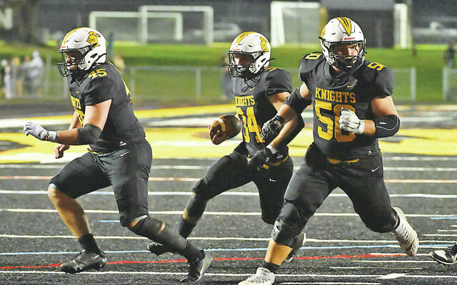 With a 7-0 lead in the first quarter, Skipalis’ fumble set Nanticoke in action at its own 9-yard line. The Trojans churned out yardage behind the running of quarterback Ian Walsh and running backs Jonah Guzman and Elaiph Denson before a fourth-down stop from Lake-Lehman’s defense brought the ball back to the Black Knights.