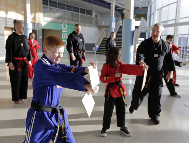 It’s especially true in his case. He started learning self-defense after he was on the losing end of a scuffle when he was just 7 years old. Right around that time, his sister, Sara, now 14, came home from school with a flyer about the dojo. She got into dance classes at the time but got bored with it and decided to join her brother in karate classes. The two got their younger sister, Sammy, now 11, into the sport, as well. Now, all three sport black belts and starred as the front line of the martial arts demonstration.
